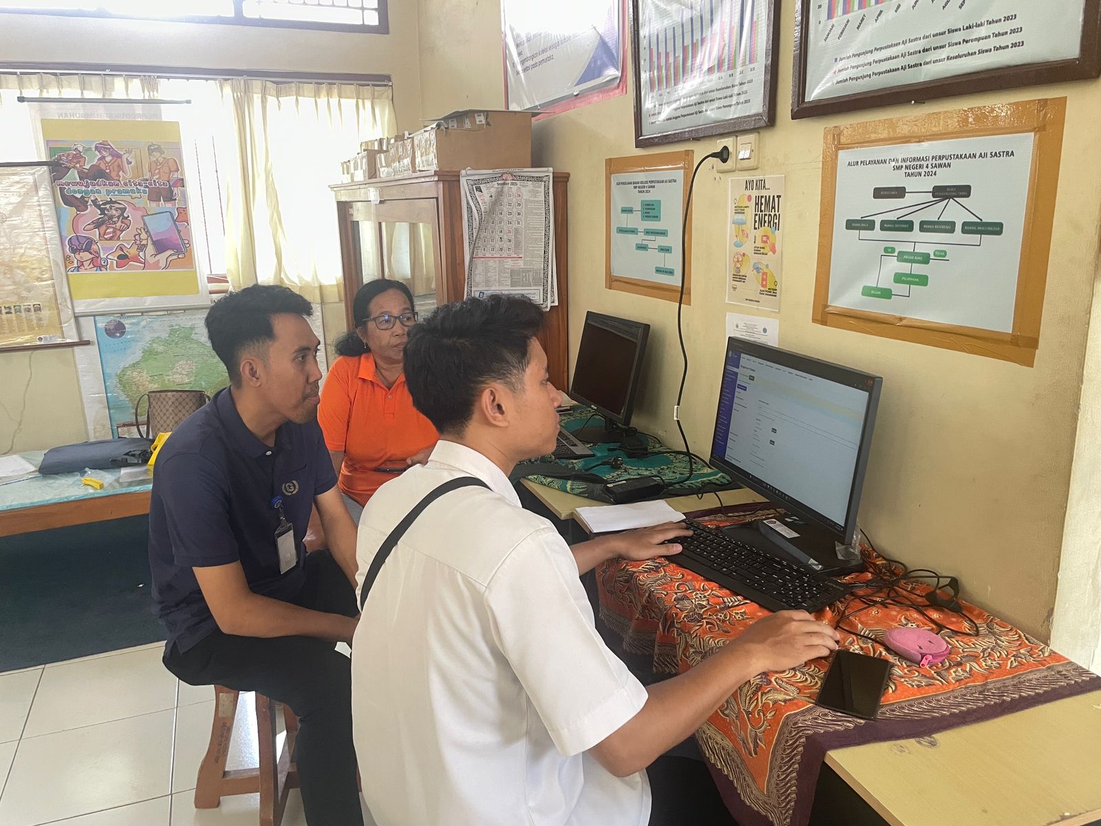 Rabu, 10 Desember, tim dari Bidang Pengolahan, Layanan, dan Pelestarian Bahan Perpustakaan DAPD Kab. Buleleng melakukan kegiatan pendampingan instalasi aplikasi perpustakaan di SD N 4 Suwug dan SMP N 4 Sawan. Di SD N 4 Suwug, tim diterima oleh Dewa Putu Mersana selaku Kepala Sekolah, dan Linda Sukrianti Dewi selaku Tenaga TU. Menurut Kepsek Mersana, pihaknya akan melakukan perbaikan manajemen perpustakaan pada semester 2. Di SMP N 4 Sawan, Kegiatan berjalan dengan baik , dukungan tenaga perpustakaan serta sarana komputer operasional perpustakaan juga menunjang di sekolah tersebut.