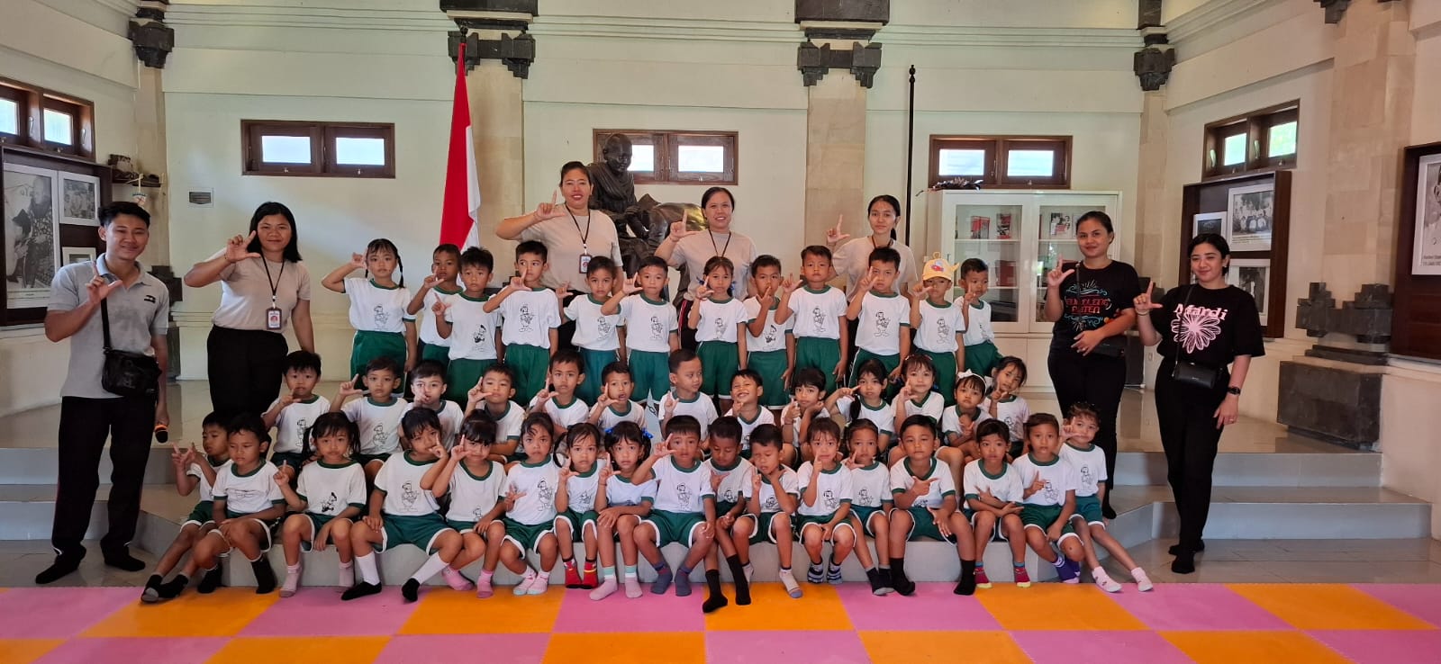 Dinas Arsip dan Perpustakaan Daerah Kabupaten Buleleng menerima Kunjungan TK Widya Kumara Sari ke Perpustakaan dan Musium Diorama Bung Karno, Jumat 10/10/2025. acara dibuka dengan menyambut dan memperkenalkan Sekilas tentang Perpustakaan Bung Karno dan mengajak selurus siswa untuk selalu mengingat sejarah pahlawan. Pada kegiatan ini, anak- anak juga di perkenalkan berbagai fasilitas literasi untuk anak usia dini seperti, bercerita, bermain komputer .Kegiatan ini sebagai bagian dari upaya meningkatkan budaya literasi sejak dini. Terlihat, antusias anak- anak yang berjumlah 42 siswa sangat antusias pada kegiatan ini. Ni Komang Tendriyana Wati selaku Kepala TK Widya Kumara Sari menyampaikan terimakasih sudah memberi kesempatan kepada anak didiknya untuk berkegiatan literasi dengan lebih variatif dan inovatif, serta diharapkan anak didik dapat lebih mengenal sejarah bangsa sejak usia dini.