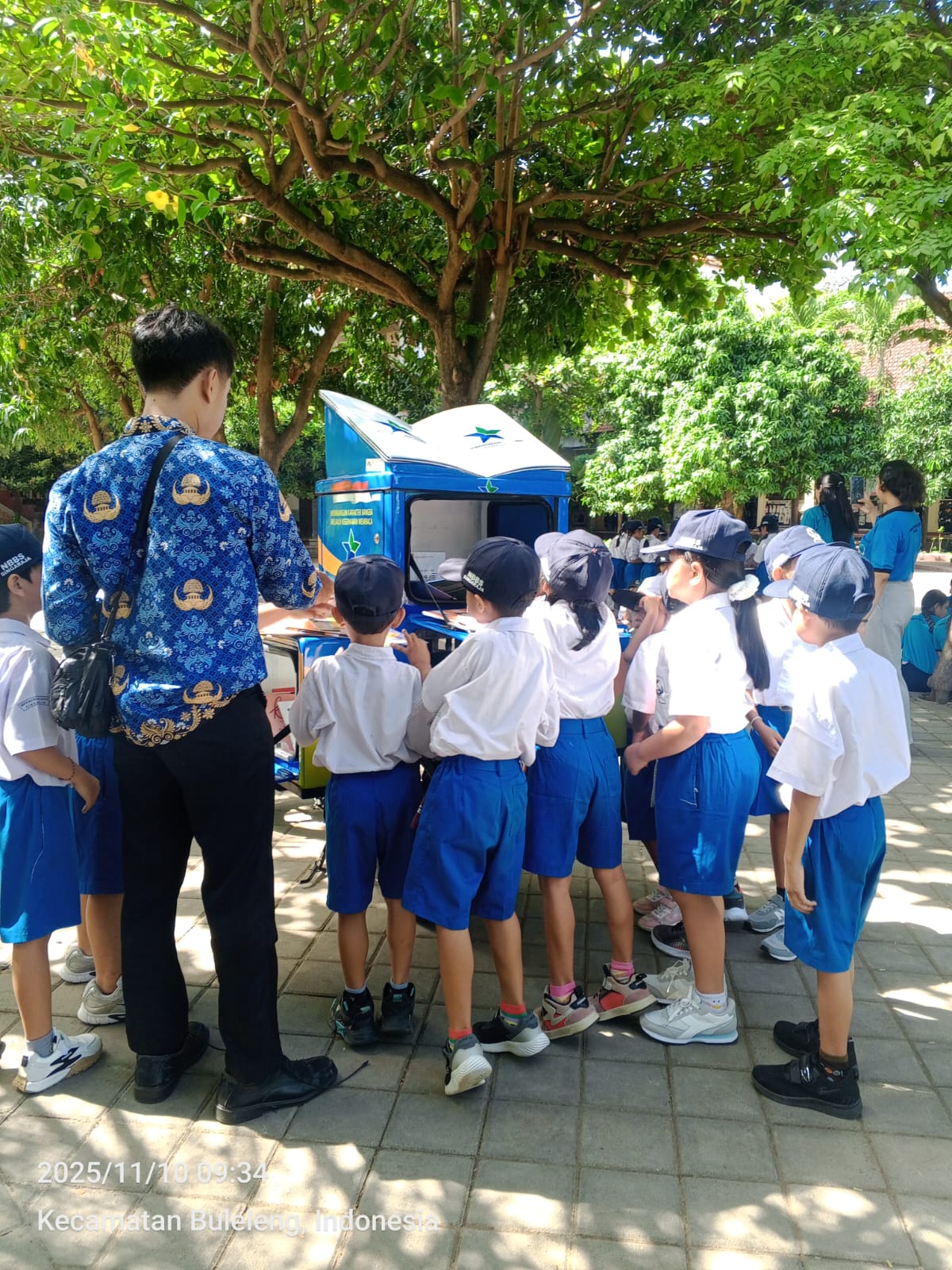 Senin 10/11, Motor Layanan Keliling menyambangi North Bali Bilingual School ( NBBS ) dalam kolaborasi kegiatan children book week. Kegiatan ini merupakan agenda rutin yang dilaksanakan NBBS dalam upaya meningkatkan pemahaman siswa terhadap literasi. Children book week ini lebih mengarah pada praktik terhadap kegiatan literasi, seperti membaca, membuat majalah dinding, menulis pengalaman, bercerita, termasuk pelibatan orangtua siswa dalam kegiatan tukar buku. Pada kesempatan ini Kepala Sekolah Putu Wika Putra, mengapresiasi kegiatan ini. para siswa secara bergiliran mengambil koleksi yang disediakan, mulai dari buku bergambar, buku cerita dwi bahasa, dan buku umum lainnya.