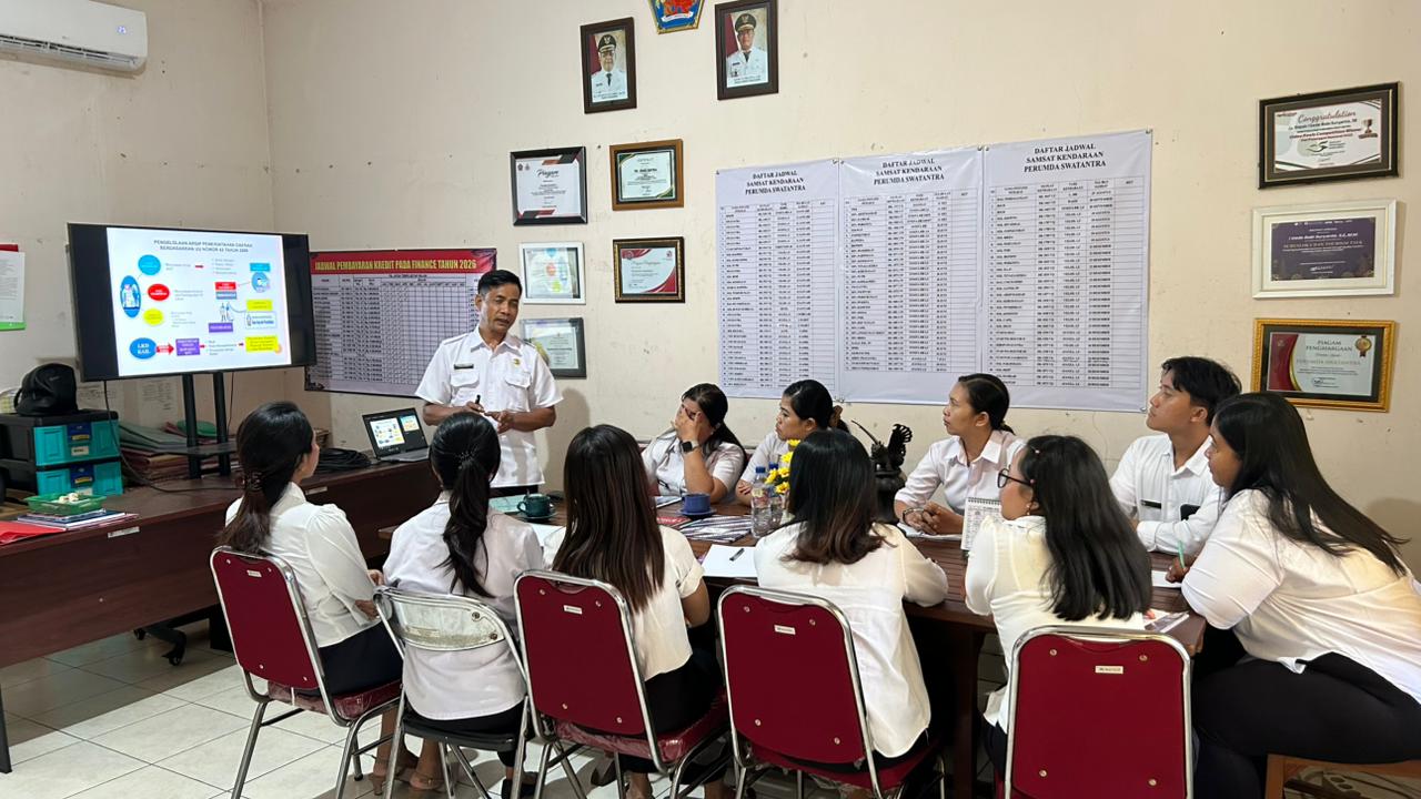 Kegiatan Pembinaan dan Koordinasi Kearsipan diterima Kabag umum, didampingi Kabag. Keuangan dan Kabag Operasional bersama staf Perumda Swatantra. Kegiatan pembinaan di awali dengan penyampaian materi Kearsipan pada BUMD dilanjutkan dengan pendampingan teknis secara langsung mengenai pemilahan arsip, pengisian kertas picis, penginputan daftar isi berkas, daftar berkas dan daftar arsip inaktif .