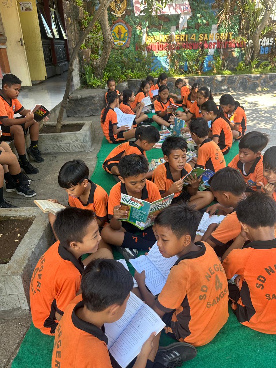 Kegiatan layanan perpustakaan keliling kembali dilaksanakan, kali ini atas permintaan SD N 4 Sangsit, Jum'at 17 Oktober 2025. Sebanyak 62 siswa didampingi para guru tampak antusias mengikuti kegiatan yang bertujuan menumbuhkan minat baca sejak dini. Melalui layanan ini, siswa diberikan kesempatan untuk mengenal berbagai koleksi buku bacaan menarik, mulai dari cerita anak, pengetahuan umum, untuk memotivasi mereka.