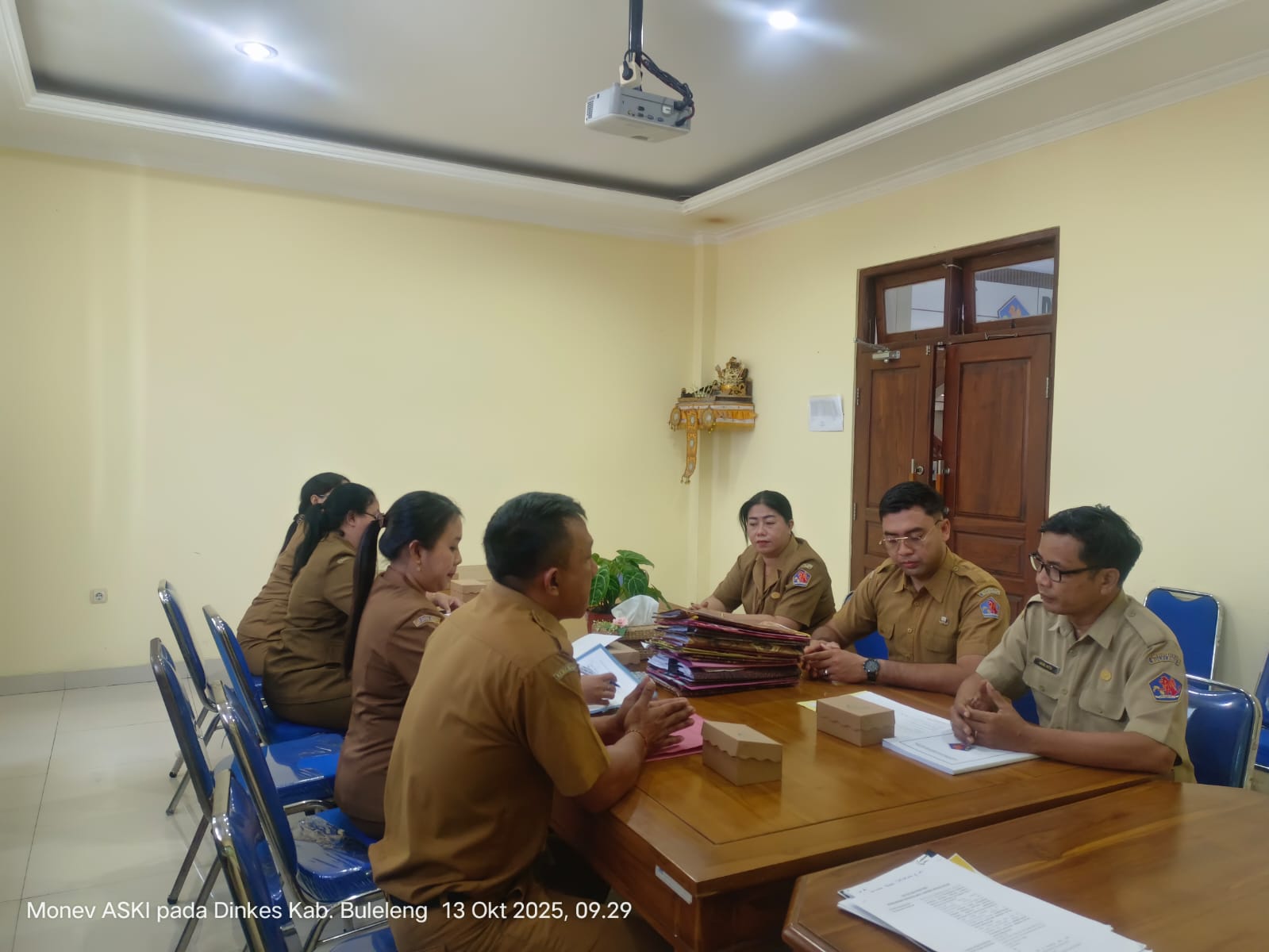 Pada hari ini, Senin tanggal 13 Oktober 2025, telah dilaksanakan kegiatan Monitoring dan Evaluasi (Monev) hasil pengawasan kearsipan internal, bertempat di Kantor Dinas Kesehatan Kabupaten Buleleng. Kegiatan ini bertujuan untuk memantau dan mengevaluasi pelaksanaan pengelolaan kearsipan di Kantor Dinas Kesehatan Kabupaten Buleleng. Kegiatan ini dikoordinir oleh Arsiparis Ahli Muda, Gede Astutiyasa, SE, yang menyampaikan hasil pengawasan yang dilakukan selama periode pengawasan yang meliputi capaian pelaksanaan pengawasan kearsipan internal serta rekomendasi tindak lanjut perbaikan komponen ASKI oleh masing-masing bidang di Dinas Kesehatan Kabupaten Buleleng.Tim Pengawasan Kearsipan diterima oleh Sekretaris Dinas Kesehatan Kabupaten Buleleng, Nyoman Budiastawan, S.KM.,M.A.P. Sekaligus menerima Laporan Audit Kearsipan Internal (LAKI), yang diserahkan oleh Arsiparis Ahli Muda. Sekdis Budi dalam kesempatan ini menyampaikan apresiasi atas pelaksanaan monev hasil pengawasan kearsipan internal dan menyatakan untuk menindaklanjuti rekomendasi hasil audit kearsipan internal