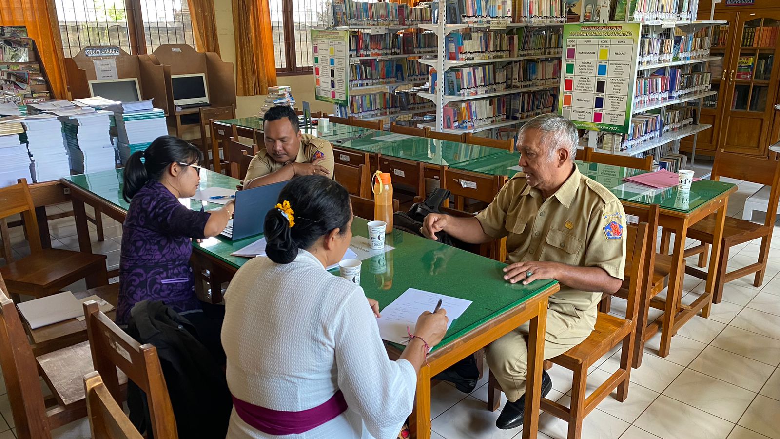 Dinas Arsip dan Perpustakaan Daerah Kabupaten Buleleng , Bidang Pengembangan Minat dan Budaya Baca melaksanakan kegiatan pendampinga pra akreditasi perpustakaan sekolah di SMA N 2 Singaraja dan SD N 3 Banjar Jawa. kegiatan ini dilaksanakan guna memantapkan persiapan sekolah dalam mengikuti kegiatan visitasi akreditasi sekolah yang sedianya akan dilaksanakan oktober mendatang. Putu Yoga Sugama selaku pembina kegiatan menjelaskan, persiapan awal guna mengikuti akreditasi yaitu dengan melengkapi administrasi yang telah diatur dalam komponen penilaian akreditasi. dengan melengkapi setiap komponen, maka sekolah dapat mengukur sejauhmana hasil yang diperoleh, sebelum nantinya penilaian dilaksanakan oleh asesor. untuk itu, pihaknya akan melaksanakan pendampingan secara bertahap, sebelum pelaksanaan penilaian.