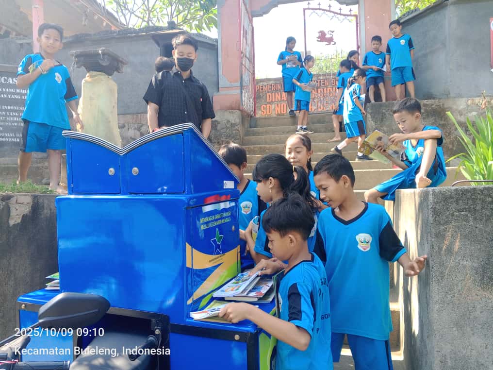 Pada Kamis, 9 Oktober 2025, DAPD Kabupaten Buleleng mengunjungi SD N 1 Poh Bergong dengan menghadirkan layanan motor perpustakaan keliling. Kegiatan ini diikuti oleh sekitar 100 siswa yang tampak antusias meminjam berbagai koleksi buku yang disediakan oleh petugas. Buku-buku yang dipinjam meliputi berbagai genre, mulai dari cerita rakyat, komik, hingga buku-buku edukatif.